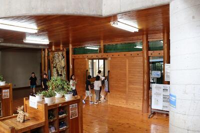 不審者の逮捕を受けて、子どもたちをホールに集め、無事を確認します。