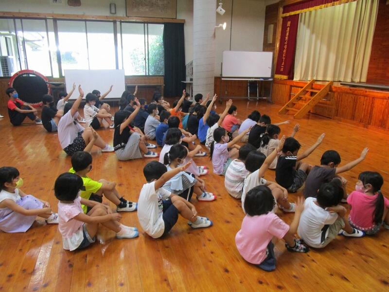 夏休みですこし気持ちがゆるんでいるかとも思いましたが、さすが高巣野小学校の子供たちです。集会は集会、立腰の姿勢を崩さず、集中して先生の話を聞くことができました。