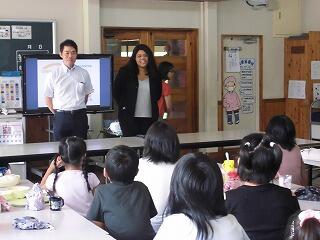 2学期からALTの先生が新しくなり、3日の給食時間に対面式を行いました。新しい先生は、アメリカのバージニア州から来られたクリステン・パーキンス先生です。これからクリステン先生と楽しい外国語の学習をしていきましょう。