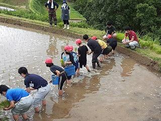 初めて田植えをする児童もいましたが、どんどん慣れてきて上手に植えることができました。体験を通して米づくりや食の文化などについて学習していきます。