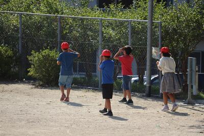 ※遮光版で見える太陽の色にまずは感動!「みどりに太陽が見えます~♪」「月みたい~」