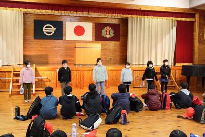 ※お別れ集会・・・学校で最初にお別れ集会をしました。6年生にありがとうの気持ちを届けました。