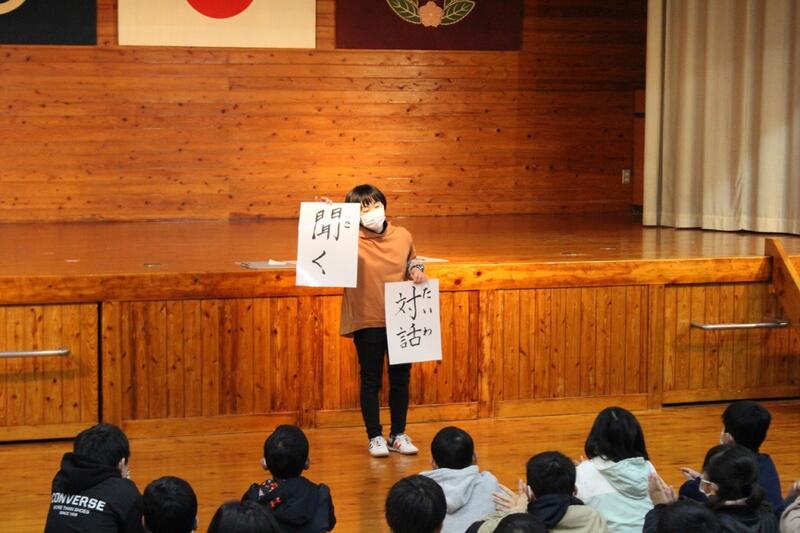 今回が今年度最後の全校集会ということもあり、次年度に向けたまとめの話とともに、この1年で子どもたちの変わってきた点、成長したところについて先生方からたくさんほめていただきました。