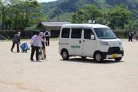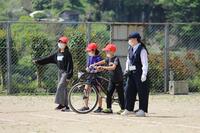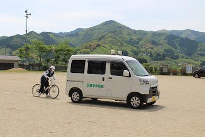 ※自転車利用の実際~グランドに出て体験学習です。停車中の車をよけて通るときは・・・・