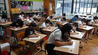 朝の活動の時間に”全校漢字テスト”(今回は2~6年)を実施しました。