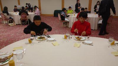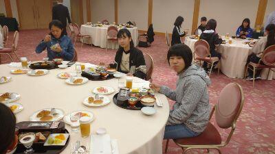 ホテルに到着。みんな、ホテルの大きさときれいさに感動❗そして、夕食はフォークとナイフで洋食をいただきました。とてもおいしかったです。