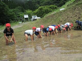 5年生も初めは動くだけでも大変だったのが、どんどん慣れてきて上手に植えることができました。体験を通して米づくりや食の文化などについて学習していきます。