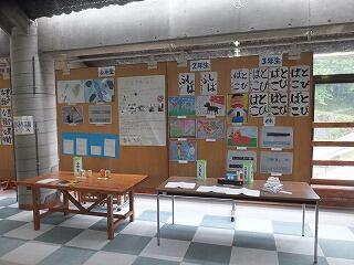 その習字・絵・工作・自由研究などの作品を校内に展示しています。