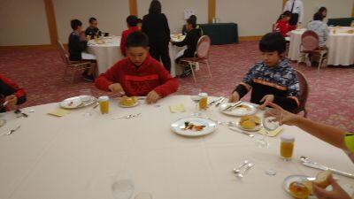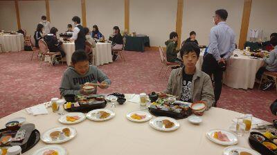 ホテルに到着。みんな、ホテルの大きさときれいさに感動❗そして、夕食はフォークとナイフで洋食をいただきました。とてもおいしかったです。