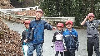 小雨が降っていて心配しましたが、ウォークラリーが始まるころには雨もあがり、6年生を中心とした縦割りグループで実施しました。学校から高巣野・松の木地区を回るコースで、途中にチェックポイントがあって5年生が準備したクイズやゲームなどを行いながら進みました。約5kmのコースを2時間かけて回りました。