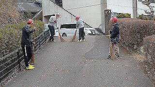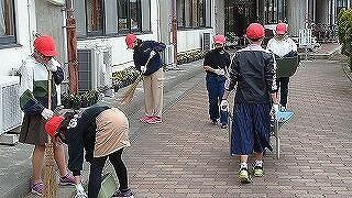 5年生は、校舎周辺や学校にあがってくる坂道が草木や花びら、土などで汚れていることに気付き、自分たちから掃除を行ってくれました。