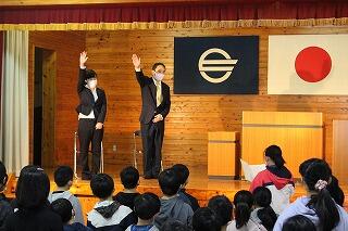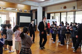 2・3年生が学校での活動を紹介したり、2~6年生が歓迎の歌を歌ったりしました。また、1年生の自己紹介や全校での歓迎のゲームを行ったりしました。