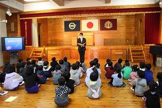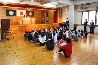 毎朝、登校するときにいっしょに歩いていただき、みんなの交通安全に気を付けてくださっています。8名の方が来校され、みんなに話をしていただきました。