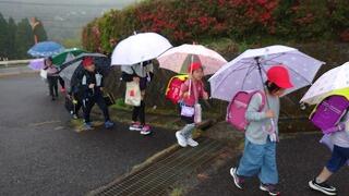 子どもたちは、9名の方がスクールガードの方、警察の方、交通安全協会の方、保護者など、たくさんの方々に見守られています。