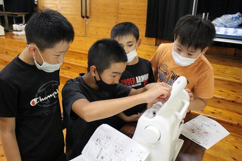 みんな、ミシンの使い方に興味津々でした。