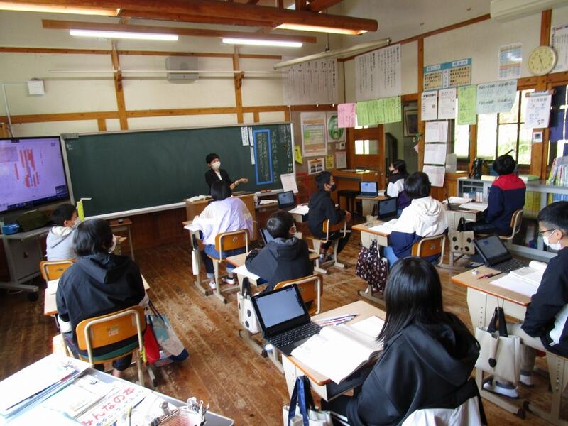 今回は、日之影中学校での研修でした。ICT活用しながらの授業や、授業に先生方も交じっての意見交換(グループ協議)など盛りだくさんの内容でした。