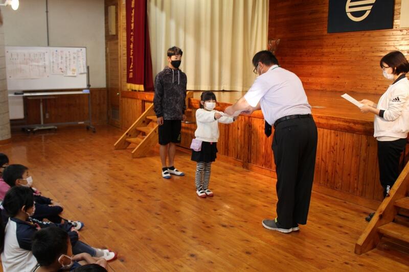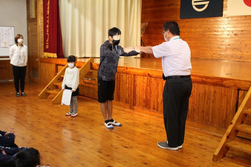 この日は、最後にスポーツテストテストの表彰もありました。2名が「体力賞」の表彰をうけました。おめでとう。