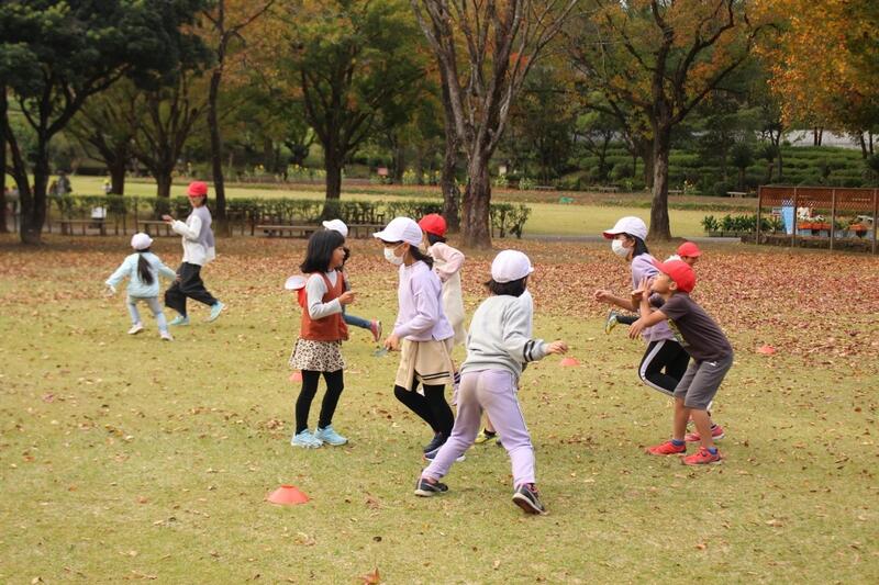 行ってみると、なんとすばらしい紅葉がまっていました。紅や黄色など、色とりどりの植物たちに囲まれて、散歩したり、楽しく遊んだり、みんなでたくさん活動しました。