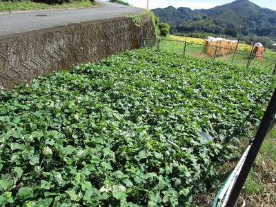 ※技術員さんが、芋の収穫しやすいように葉っぱなどを片付けてくれています。ありがとうございます。