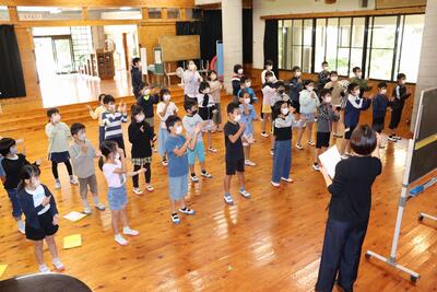 日之影町の音楽祭に向けた練習がはじまりました。今年度初めての全校音楽ですが、子どもたちの息もぴったりです。これから練習を重ねるごとにさらによくなっていくでしょう。