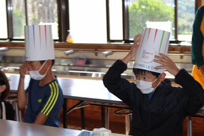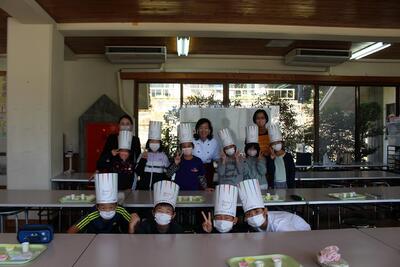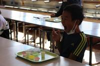 給食委員会からのプレゼントをもらって、ご満悦です。みんなで、「おめでとう!!」コールをしました。
