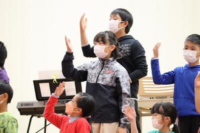 ※次に、全校児童による合唱「世界がひとつになるまで」です。