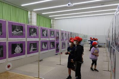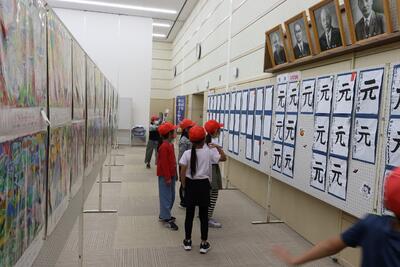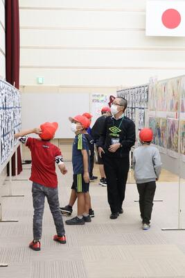 音楽祭のあと、役場へ移動し作品展を見学しました。そこには、自分たちの作品が・・・・わ~、やった~と思わず声が漏れた子ども達もいました。
