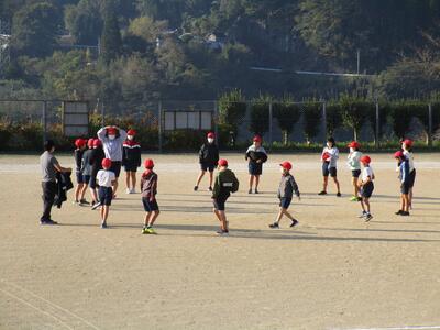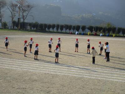 ※最後は、きちんと整理体操を行って終わりです。何気ない整理体操の風景ですが、しっかり円になって行っています。学級ごとの子どもたちのチームワークができているからこそ、きれいな円になっての活動ができるのですね。持久走大会当日は、どういう結果になるのやら・・・応援よろしくお願いします。