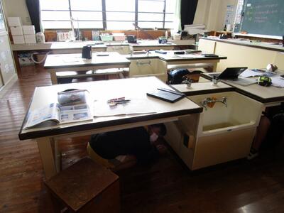 学校の避難訓練があったその日、その前に町内放送から防災放送が授業中に流れてきました。子どもたちの行動の早いこと、びっくりです。思わず、カメラでとってしまいました。