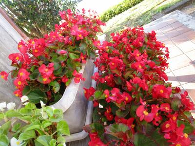 学校の玄関では、ベゴニアがきれいに花を咲かせています。毎年、この時期に花を咲かせてくれます。とても、キレイです。子ども達が、毎朝ボランティアで、花摘みなどして手入れをして大事にしています。