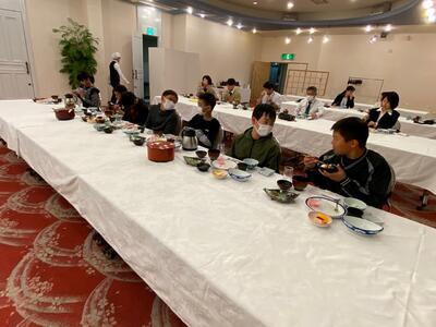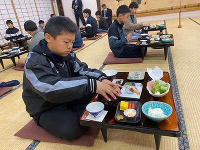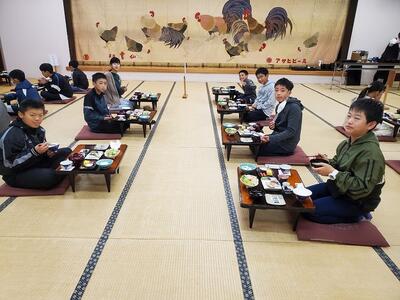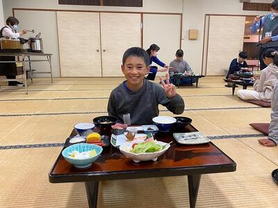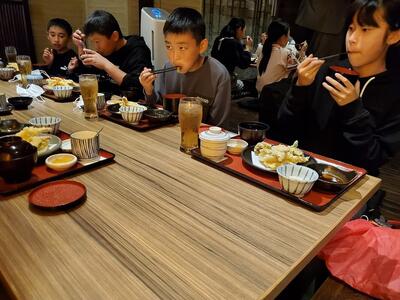 修学旅行のごはんは、とてもおいしいです。みんなで食べる食事が何よりです。子ども達も昼食・朝食を食べ元気に活動しています。