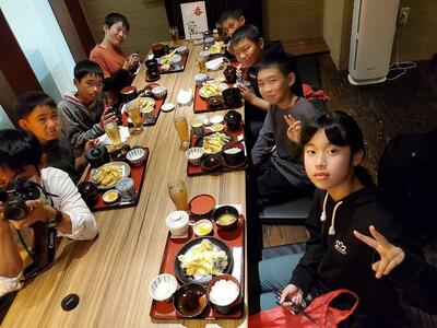 無事、ホテルへ到着し、夕食をおいしくいただきました。明日も、元気にがんばりましょう。