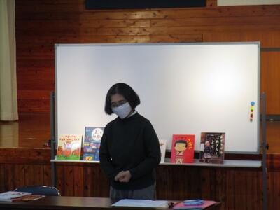 毎週金曜日の昼食時のプレゼントは、図書活動推進員(町立図書館)の方の読み聞かせが入ります。毎週、どんなお話が聞けるのか子どもたちも楽しみにしています。