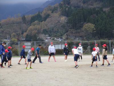 ※最後は、きちんと整理体操を行って終わりです。何気ない整理体操の風景ですが、しっかり円になって行っています。学級ごとの子どもたちのチームワークができているからこそ、きれいな円になっての活動ができるのですね。持久走大会当日は、どういう結果になるのやら・・・応援よろしくお願いします。