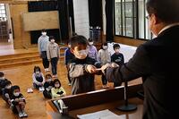 ※修了証を各学年の代表に、校長先生が渡されました。