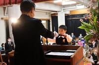 ※門出の言葉は、自然と声も大きくなります。涙をこらえて歌います。