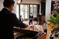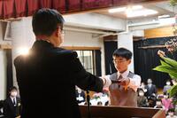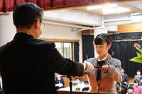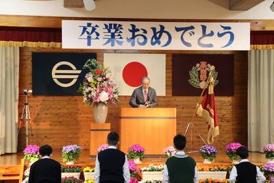 ※そのあと、卒業する皆さんへ、精魂込めた「卒業祝い品」が手渡しされました。その際、将来への思いを語ってくださいました。夢を持ち続けることの大切さなど短い時間ではありましたが熱い話でした。