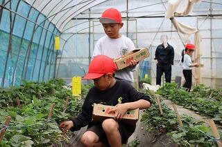 今年もまた、1・2年生がいちご狩りをすることができました。