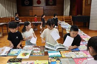 たくさんの本を興味深そうに読んでいる子どもたち。