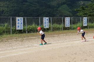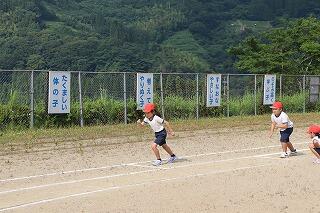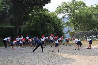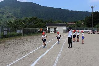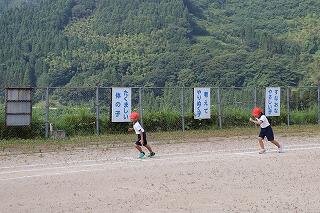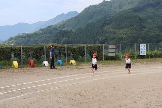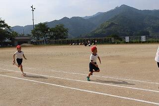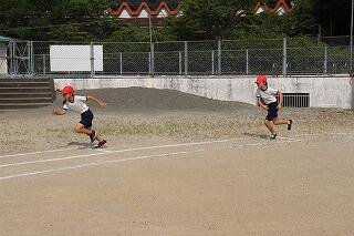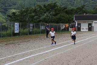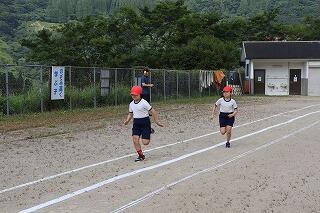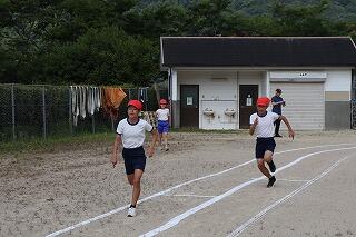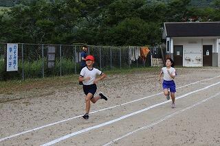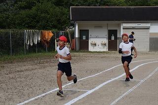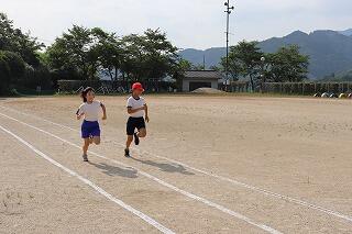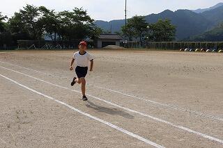 準備体操をしっかりやって、1・2年生は80m、3・4年生は100m、5・6年生は120m走りました。