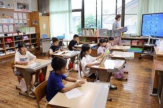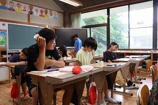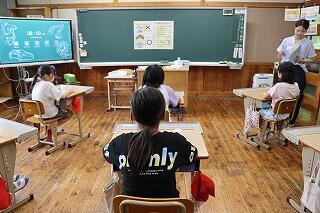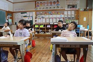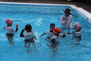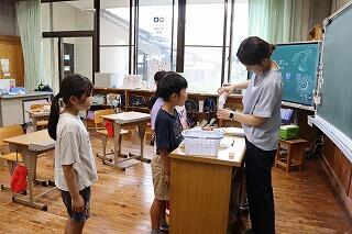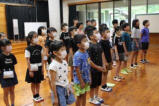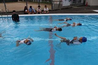 7月10日(木)に1・2年生と5・6年生、11日(金)に3・4年生が着衣泳をしました。
