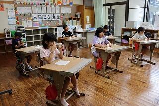 7月9日(水)毎週水曜日の朝の時間、健康状態をしっかりと確認してから希望者のみフッ化物洗口をしています。