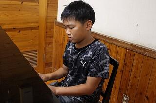 顔を下に向け右や左に傾けながら、口の中で泡をぶくぶくさせて1分間音楽に合わせます。