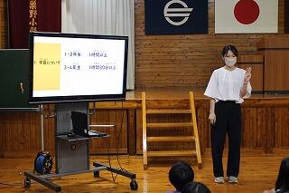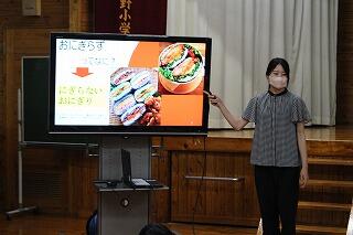 養護教諭から、夏休みの宿題である「おにぎらずの作り方」についての説明もありました。