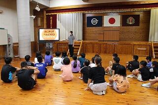 生徒指導主事から「楽しい夏休みにするために」①学習について、②遊び方について、③交通ル-ルについてのお話がありました。
