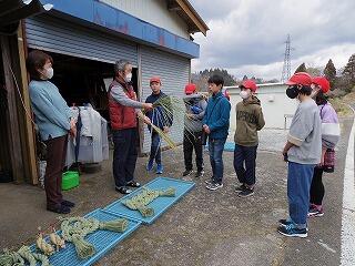 毎年、「たくぼ」の皆様からは学校に玄関のしめ縄やたくさんのわら細工を送っていただき、また今年の学習発表会ではしめ縄を使わせていただき、本当に感謝しています。