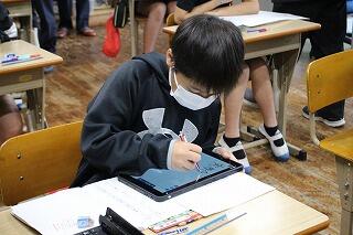 今年度の学校の取組を説明したり、国語科の研究授業(6年)や各学年の授業、子どもたちの授業や様々な活動の様子を参観したりしていただきました。