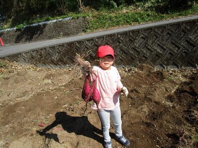 ※土が思いのほか堅かったので、悪戦苦闘してほります。「先生、硬いです~♪」(なんだか嬉しそう!)