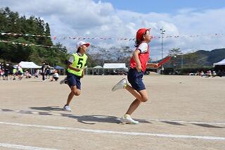 午後1つ目のプログラム「1~4年生徒競走」です。