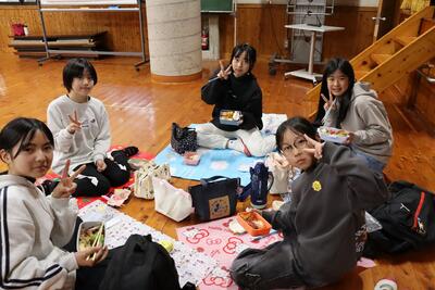 お昼は全員でホールに集まり、お弁当を囲んで楽しいひとときを過ごしました。